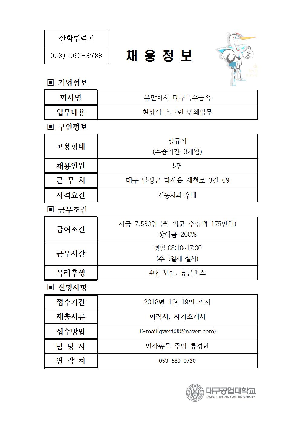 채용정보-유한회사 대구특수금속