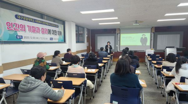 □ 대구공업대학교(총장 이별나) 사회복지경영계열은 12월 3일(수)과 12월 10일(수) 2회에 걸쳐 사회복지경영계열 성인학습자를 대상으로 인간의 기질과 심리에 대한 이해를 주제로 비교과프로그램을 운영했다고 밝혔다.