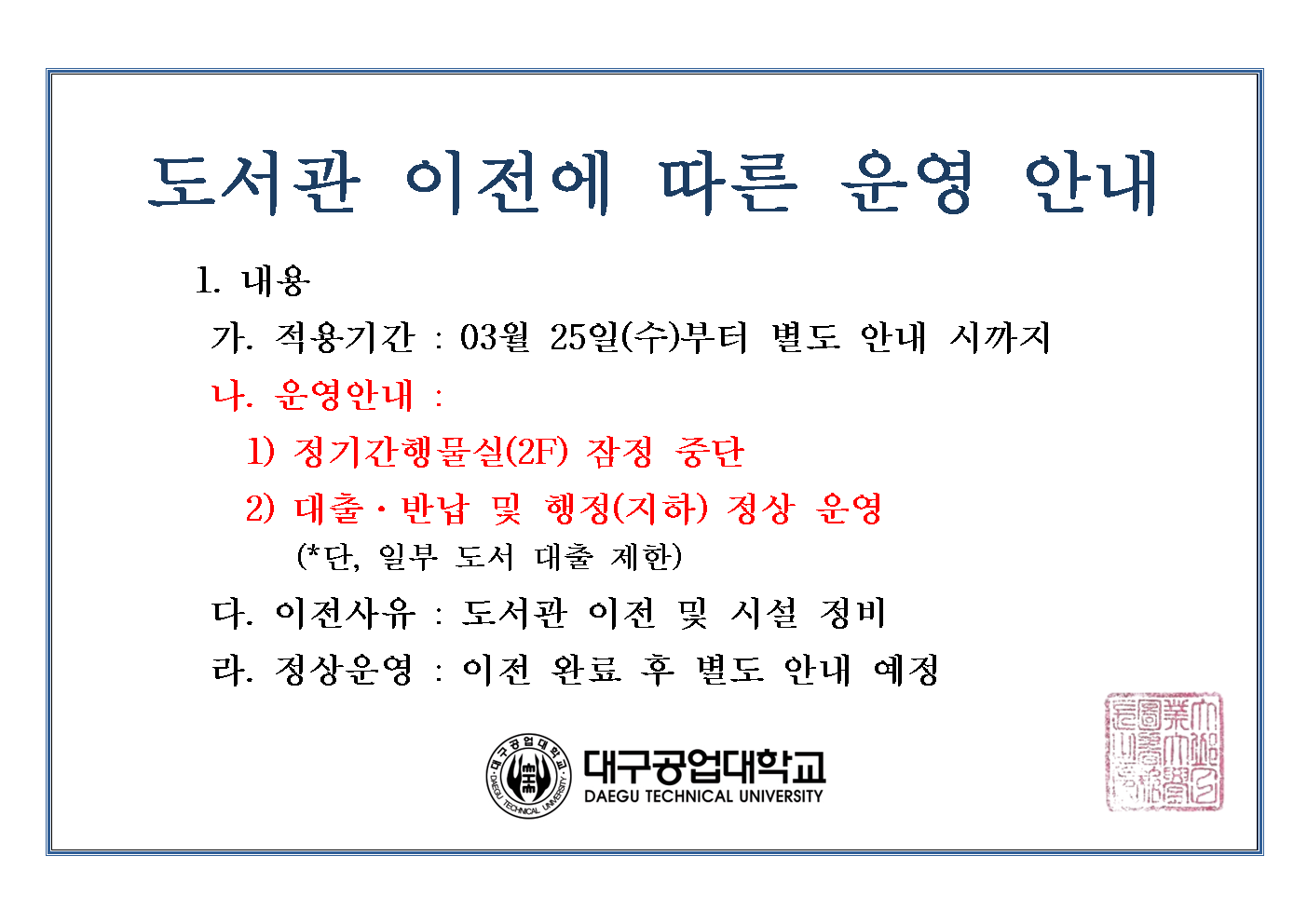 도서관 이전에 따른 운영 안내
